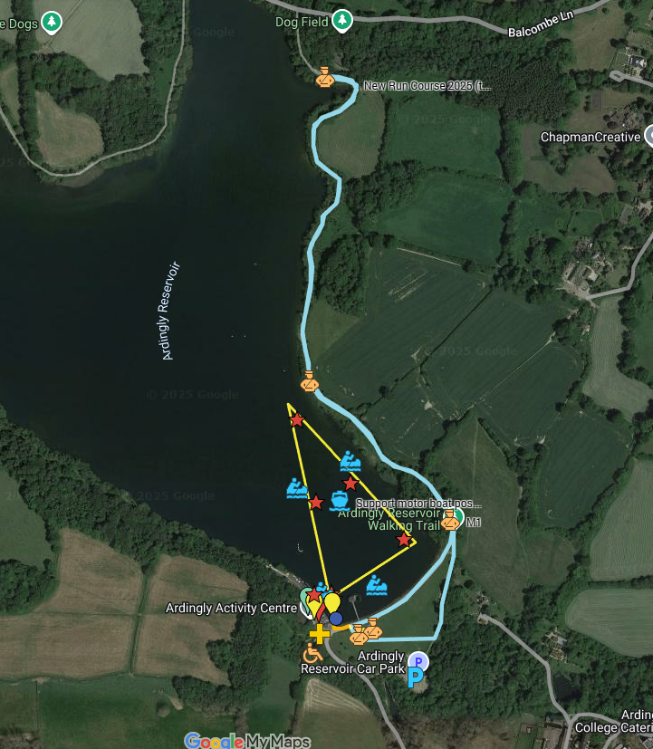 The Beautiful surroundings at this location is great to take a long distance swim. The water is set in the lovely countryside of west Sussex high hills on all sides, wild birds and the iconic Ardingly College building in the back ground. The triangular swim course is based in the western side of the water and swims out from the Activity Centre to the middle of the water then back along the far side, then across in front of the main wall. All spectators will get a great view of the whole course.